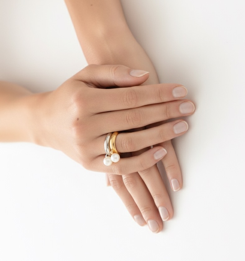 A sculptural, two-in-one design that shifts between ear cuff and pinky ring with effortless style. Featuring a luminous contemporary pearl, it balances bold form with delicate elegance. Adaptable, refined, and uniquely yours.
