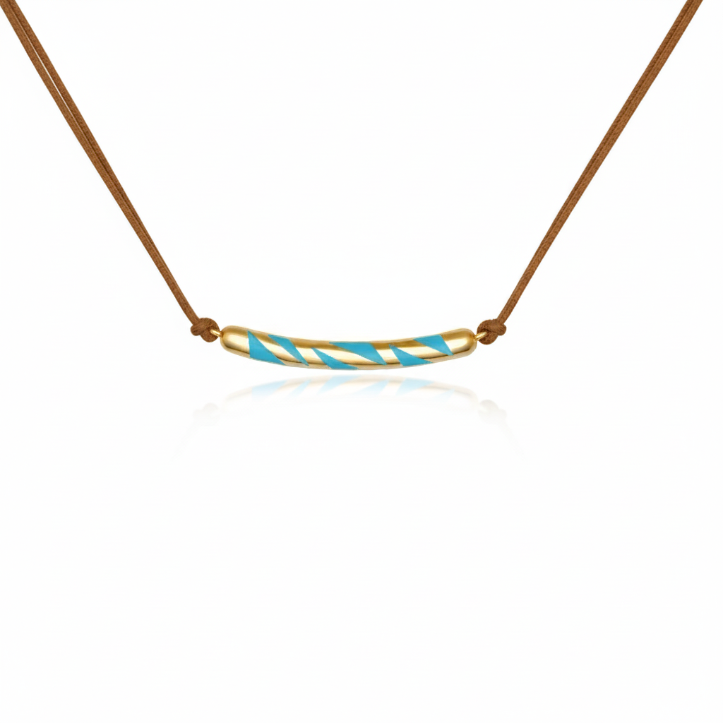A sculptural, reversible barrel pendant suspended on a sleek chain, bold, fluid, and designed with two contrasting sides to reflect your mood. Whether you show the vivid tone or the softer shade, this necklace offers effortless versatility. A modern talisman of balance, movement, and quiet power.