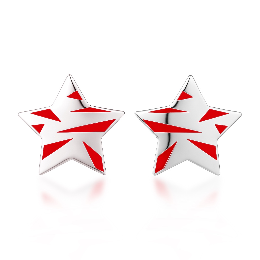 925 Silver with Platinum plating and red enamel, More colours available